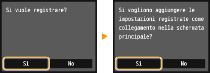 <Sì>.Se al passo 2 sono state selezionate delle impostazioni che già erano registrate, viene visualizzata una schermata di conferma per sovrascrivere le impostazioni precedenti.