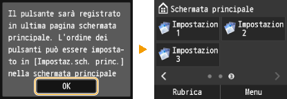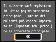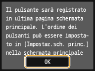 Se la schermata iniziale è piena e non possono più essere registrate altre impostazioni, eliminare gli spazi con <Impostaz. sch. princ.> nella schermata iniziale oppure rimuovere i pulsanti registrati. Eliminazione di pulsanti
