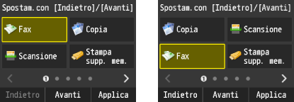 Toccare <Indietro>/<Avanti> per spostare il pulsante finché non viene visualizzato nel punto desiderato.