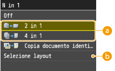 , ma i bordi del documento potrebbero non venire copiati in caso di aumento.<2 in 1>/<4 in 1> non è disponibile quando si utilizza <Cancellazione bordi> e <Copia documento identità>.
