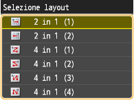 È possibile copiare due o quattro documenti in formato ridotto su un foglio singolo. In questo modo si riduce il numero di pagine, risparmiando carta.