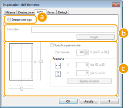 Specificare ciascuna impostazione. La schermata seguente mostra un esempio quando si seleziona la scheda [Logo].