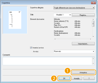 Fare clic su [Anteprima] per verificare il contenuto della copertina e se tutto è corretto, fare clic su [OK].