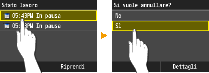 Toccare il documento sulla schermata <Stato lavori copiatura/stampa>