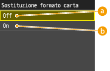 Selezionare per stampare in formato A4 o Letter se è caricata carta in uno questi formati. Ad esempio, se si stampa un documento Letter ma è caricata solo carta A4, la macchina stampa il documento su carta A4.