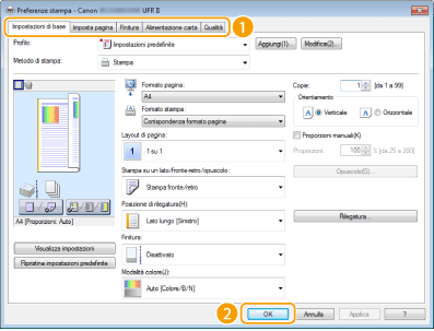 Modificare le impostazioni nella schermata delle impostazioni di stampa, quindi fare clic su [OK].