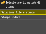 È possibile stampare miniature dei file di immagine (solo JPEG) salvati in un dispositivo di memoria USB. Per stampare le immagini in miniatura, toccare <Stampa indice> nella schermata, quindi procedere al passo successivo.