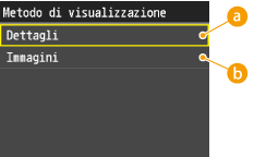 È possibile modificare il metodo di visualizzazione da <Dettagli> (per nomi di file e date di modifica) a <Immagini> (per le anteprime). Visualizzando le immagini in anteprima è possibile controllare il contenuto del file prima di selezionare un file da stampare.