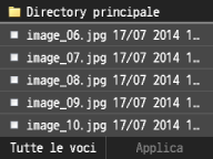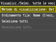 Quando si tocca <Data/Ora (Crescente)> oppure <Data/Ora (Decrescente)>, i file vengono ordinati in base a date e ora di modifica dei file.