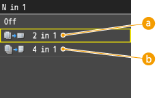 È possibile stampare due o quattro immagini su un singolo foglio. Toccare <2 in 1> oppure <4 in 1>.