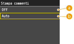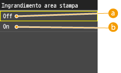 Stampa in modo rifinito non solo i bordi di diagrammi, ma anche i mezzitoni nei diagrammi. Impostare <Modo 2> se i caratteri grandi e i mezzitoni nelle linee grosse con colori scuri sono disallineati e non stampati in maniera rifinita quando si stampa con <Modo 1> impostata.