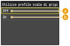Questa impostazione consente di specificare come si devono stampare i dati monocromatici (C=M=Y=0) quando i dati CMYK dipendenti dal dispositivo vengono elaborati utilizzando il <Profilo simulazione CMYK> della macchina.