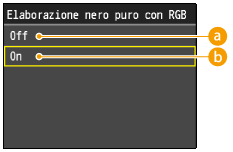 Se si seleziona <Nessuna> per <Profilo sorgente RGB>, non si applica l'impostazione Elaborazione nero puro RGB.