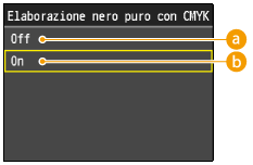Se si seleziona <Nessuna> per <Profilo simulazione CMYK>, non si applica l'impostazione Elaborazione nero puro CMYK.