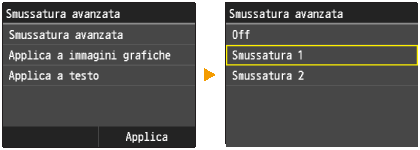 Le impostazioni sul display per <Applica a immagini grafiche> e <Applica a testo> saranno efficaci solo se [Impost. predefinite stampante] è impostato per la Rifinitura avanzata nel driver della stampante.