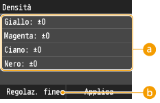 Regolare ciascuna delle densità di stampa di <Giallo>, <Magenta>, <Ciano> e <Nero>.