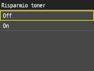 Questa impostazione consente di impostare la funzione Risparmio toner che utilizza meno toner per stampare i documenti e quindi può portare il toner ad avere una durata superiore.