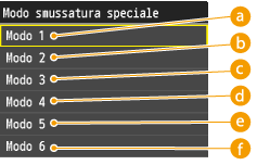 Stampa uniformemente immagini e oggetti in mezzitoni. Impostare <Modo 5> se le fasce di sfumatura delle immagini e dei diagrammi non sono uniformi o se gli schemi di retinatura sono disomogenei quando si stampa con <Modo 1> impostata.