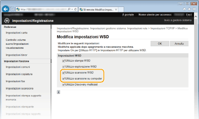 Selezionare le caselle di controllo [Utilizzo scansione WSD] e [Utilizzo scansione su computer].