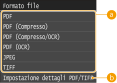 <Impostazione dettagli PDF> o <Impostazione dettagli PDF/TIFF>