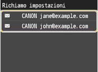 È possibile selezionare una destinazione tra le tre più utilizzate in precedenza. Quando si specifica una destinazione utilizzata in precedenza, la macchina configura, per praticità, le stesse impostazioni di scansione, ad esempio per la densità, utilizzate per l'ultimo invio di documenti a tale destinazione.