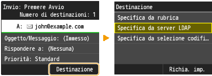 Se nell'ufficio è installato un server LDAP, è possibile utilizzare le destinazioni ivi registrate. Per specificare le destinazioni, accedere al server LDAP tramite la macchina e cercare una destinazione.