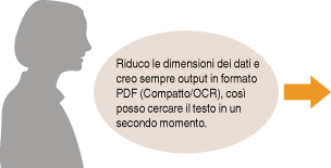 Cambiare il formato file in <PDF (Compresso/OCR)> e registrarlo come impostazione predefinita. D'ora in poi è possibile eseguire scansioni senza specificare le impostazioni. Modifica delle impostazioni predefinite
