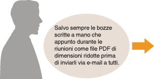 Registrare gli indirizzi di posta dei partecipanti e il formato file come una combinazione <PDF (Compresso)> su <Impostazioni preferite>. È possibile utilizzare questa combinazione in tutta semplicità quando necessario. Registrazione delle impostazioni scansione utilizzate frequentemente (e-mail/cartella condivisa/file server)