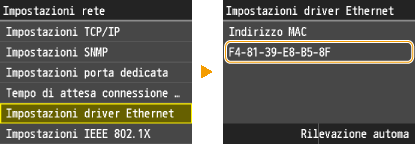 La connessione della macchina ad un bridge o hub di commutazione può non riuscire anche se l'indirizzo IP è configurato correttamente. Questo problema può essere risolto impostando un intervallo prima che la macchina inizi la comunicazione. Impostazione di un tempo di attesa per la connessione a una rete
