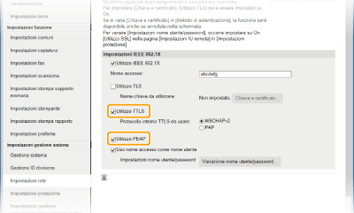 Selezionare la casella di controllo [Utilizzo TTLS] o [Utilizzo PEAP].