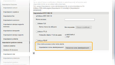 Selezionare la casella di controllo [Utilizzo IEEE 802.1X], immettere il nome di accesso nella casella di testo [Nome accesso] e specificare le impostazioni richieste.