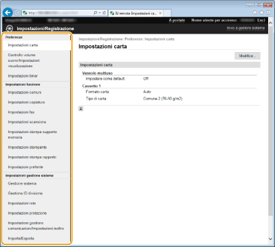 È possibile modificare le impostazioni in [Impostazioni gestione sistema] solo dopo aver effettuato l'accesso in modalità Gestore sistema.