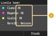 La dicitura "XXXX" nelle descrizioni seguenti corrisponde, nei messaggi sulla macchina, alle cartucce di toner nero, giallo, magenta o ciano.