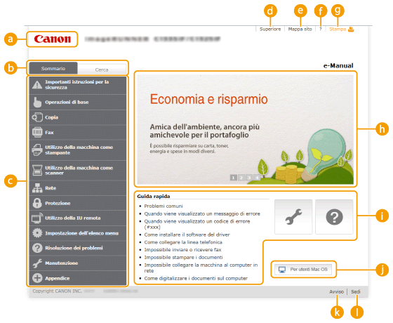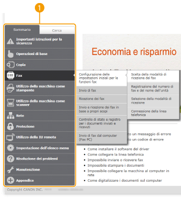 Fare clic per visualizzare tutti gli argomenti dell'e-Manual..