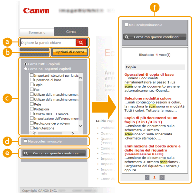 Visualizza i risultati di ricerca delle pagine contenenti le parole chiave specificate. Dai risultati, individuare la pagina cercata e fare clic sul titolo dell'argomento della pagina. Se non è possibile visualizzare i risultati su una pagina, fare clic su