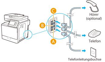 Schließen Sie das Telefonleitungskabel an die Telefonleitungsbuchse des Geräts (