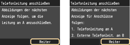 Tippen Sie auf <Weiter>, nachdem Sie das Gerät an die Telefonleitung angeschlossen haben.