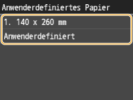 Tippen Sie auf <Anwenderdefiniert>, um ein Papierformat anzugeben.