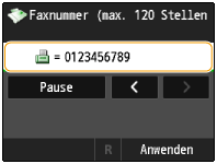 Tippen Sie auf <Pause>, um am Ende der Faxnummer erforderlichenfalls eine Pause einzufügen.