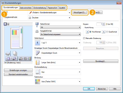 Speichern von Kombinationen häufig benutzter Druckeinstellungen