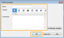 Geben Sie in [Name] einen Profilnamen ein, wählen Sie ein Symbol aus, und klicken Sie dann auf [OK].