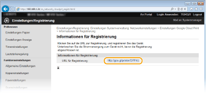 Klicken Sie auf den Link für die URL, die für [URL für Registrierung] angezeigt wird.
