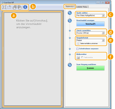 auf dem Bildschirm angegeben ist, und klicken Sie auf [Scannen]. So können Sie die grundlegenden Einstellungen konfigurieren und dann scannen.