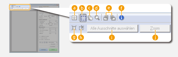 Diese Option legt automatisch einen Schnittrahmen fest, der an das gescannte Dokument angepasst ist. Jedes Mal, wenn Sie auf das Symbol klicken, wird der Schnittrahmen verkleinert.