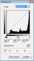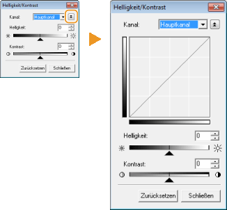 Diese Option passt die Helligkeit und den Kontrast (den Unterschied zwischen den hellen und dunklen Teilen) des Bildes an. Um die Anpassung mit der Überprüfung eines Diagramms vorzunehmen, klicken Sie oben rechts im Bildschirm auf
