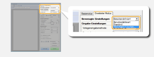 Es ist sehr umständlich, bei jedem Scan den Farbmodus, die Bildqualität oder andere Einstellungen zu konfigurieren. Wenn Sie häufig verwendete Einstellungen unter "Bevorzugte Einstellungen" registrieren, können Sie beim Scannen ganz einfach die registrierten Einstellungen aufrufen.