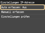 Überprüfen Sie, ob <IP autom.> auf <Ein> gesetzt ist.