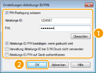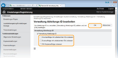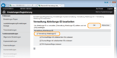 Aktivieren Sie das Kontrollkästchen [Verwaltung Abteilungs-ID], und klicken Sie auf [OK].