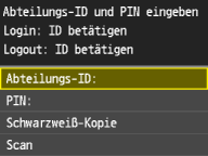 Wenn die Verwaltung per Abteilungs-IDs aktiviert ist und Sie versuchen, das Gerät zu benutzen, wird der folgende Anmeldebildschirm angezeigt.