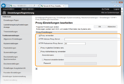 Aktivieren Sie das Kontrollkästchen [Proxy verwenden], und legen Sie die erforderlichen Einstellungen fest.